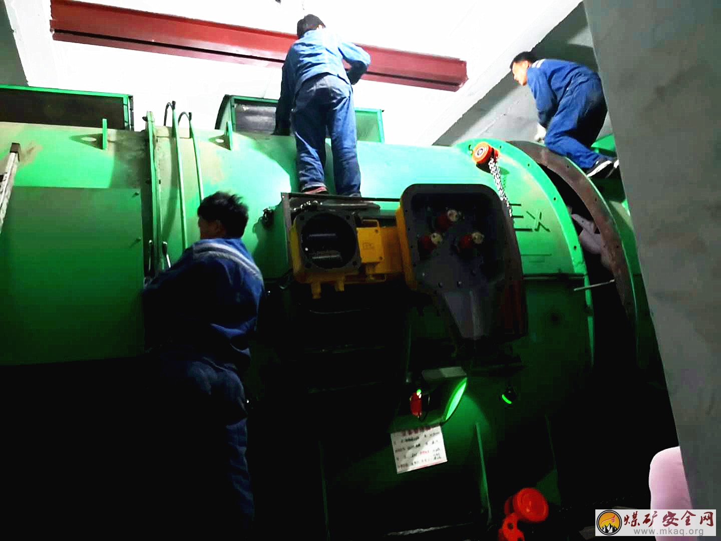 月亮田礦南三主扇為雙電機,單台電機功率為500千瓦,重量為58噸,拆卸、送修耗時耗力,經現場各級管理人員綜合03manbetx ,決定現場拆開進行詳細檢查,在拆到電機接線腔與電機繞組之間的連接管(DN100鋼管)時發現,電機繞組引出線燒斷兩根,遙測電機繞組正常,經更換兩根引出線後,電機試運轉完全正常,在11日淩晨0點58分,南三主扇1號機修複正常完成安裝轉為備用。