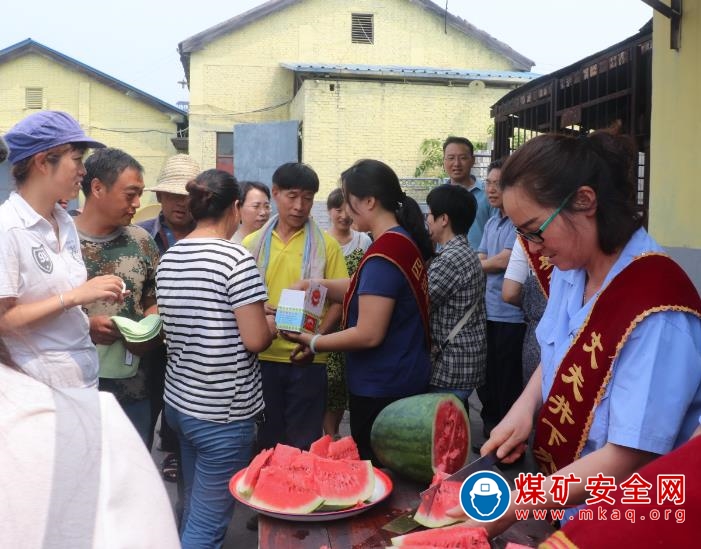 7月份以來,天氣依然高溫不下,麵對30多度的高溫天氣,為廣大職工多服務,服好務成為鶴煤公司工會當前的重點和要點工作。為此,該公司工會特意開展了這次“送清涼”慰問活動。當天上午11時許,鶴煤公司黨委常委、工會主席徐偉等一行領導在鶴煤三礦工會主席王紅喜的陪同下來到該礦供管科支護車間開展“送清涼”慰問活動。鶴煤公司黨委常委、工會主席徐偉親自為支護車間的職工發放西瓜、萬金膏、茶葉和毛巾等,並囑咐職工幹活時注意安全,避免高溫作業。該礦工會主席王紅喜也積極主動加入到“送清涼”的活動中,給職工分發慰問品。