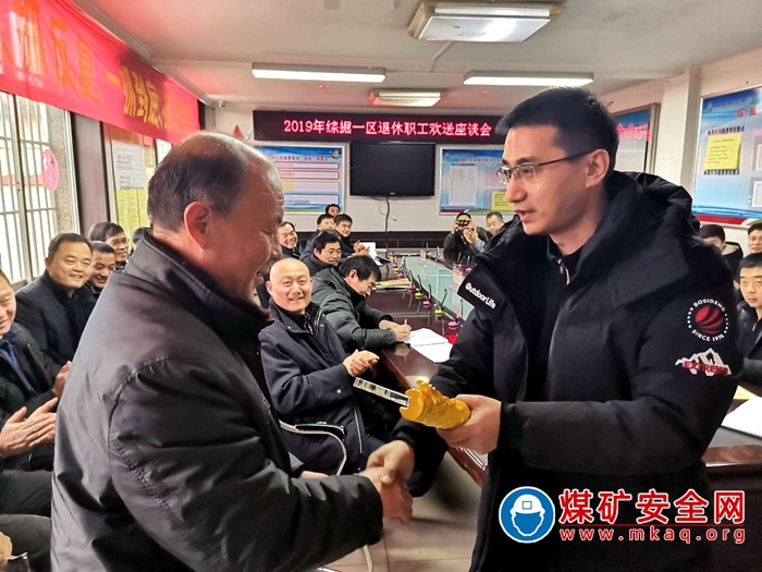 綜掘一區負責人為每位退休職工送上刻有“光榮退休”的紀念獎杯,並在會上感謝他們為礦井做出的貢獻,祝福他們過好退休生活,叮囑他們注意身體,經常回單位看看,一如既往的幫助和指導區隊安全工作。