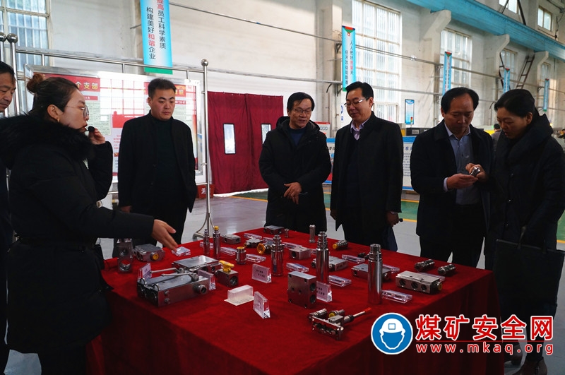 在煤機公司,考評組一行首先走進液壓閥和圓環鏈車間現場參觀和了解了具有國內高精端液壓閥產品和陝西省名牌圓環鏈產品的技術工藝及先進生產線,查看了生產現場黨員示範崗發揮作用。在圓環鏈車間參觀了以兩個維護、四個意識、四個自信為內容的黨建文化梯牆,和以黨員製度牆、承諾牆、榮譽牆、清正廉明意義解析、黨員廉政讀書角、廉政教育影視角、黨員學習園地為內容的廉政文化建設工作學習會議室,展現了濃厚的廉政文化氛圍。
