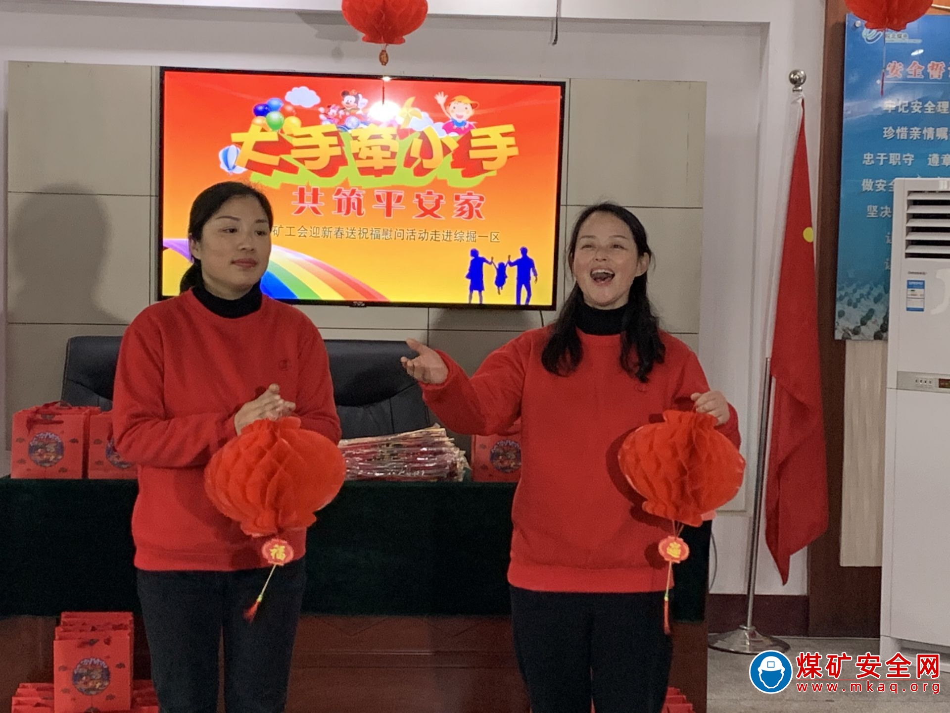 春節臨近,皖北煤電集團任樓煤礦組織女工協管員及童講團來到一線單位班前會上,開展“大手牽小手、共築平安家”慰問活動,把精彩的節目和大紅的福字送給一線職工,為他們送去節日祝福和安全叮囑,用愛心和親情築起礦井安全生產的第二道防線。(郭春梅)