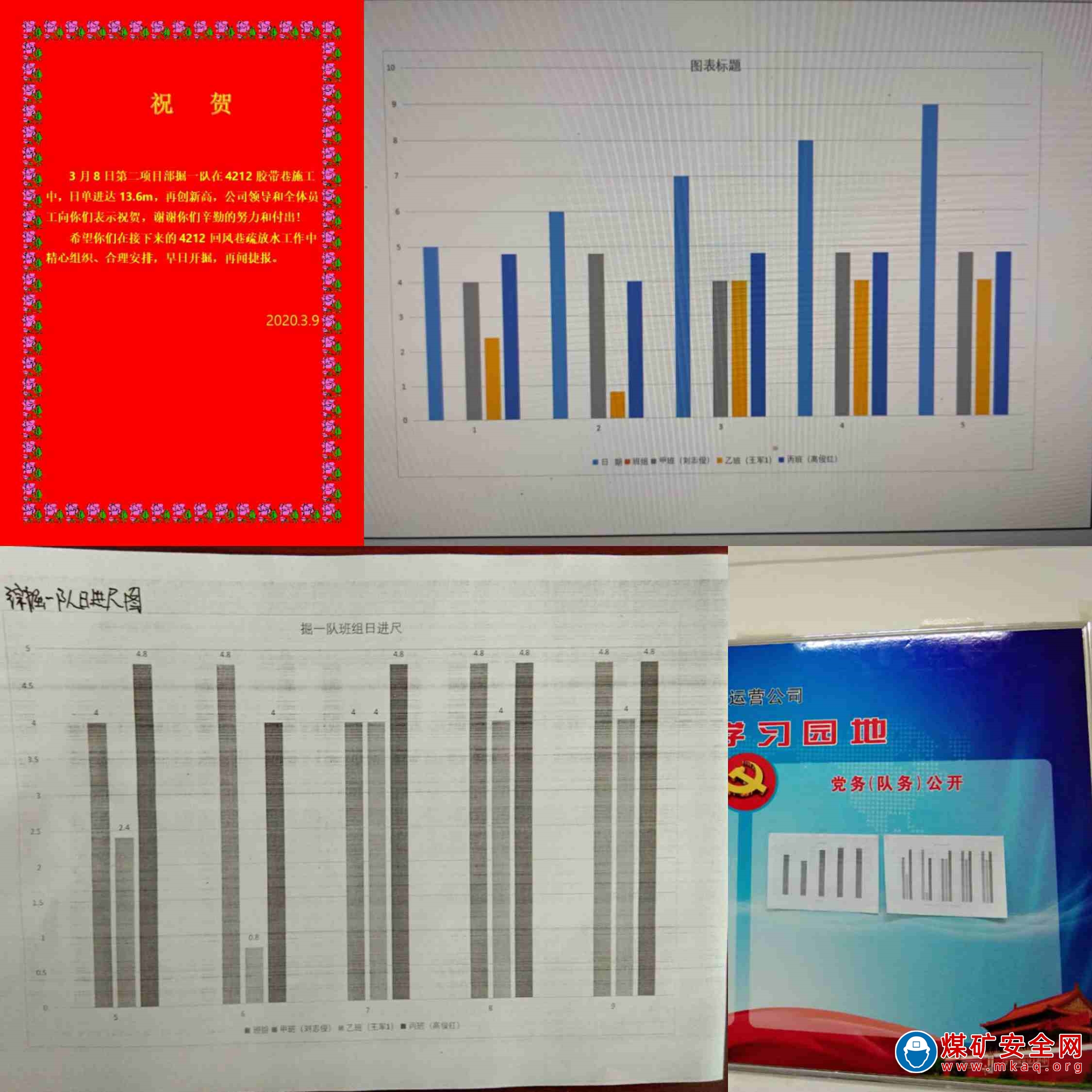 “截止今天,你隊連續6天完成生產任務,在4212運輸順槽過程中日單進13.6m的新紀錄,為各區隊帶了好頭,樹了榜樣,可喜可賀。”3月10日,陝煤蒲白煤礦運營公司領導班子成員及工會工作人員前往第二項目部掘一隊,為其送去喜報和慰問品,給廣大一線幹部職工送去黨政工團的關懷,鼓勵大家再接再厲,再創佳績,進尺的再創新高,大大鼓舞了職工士氣。