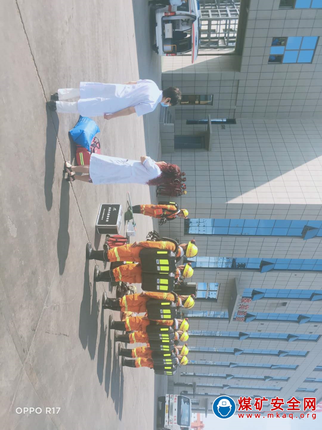 接到報警電話後,曹家灘救護消防中隊立即出動一個小隊進行處理,經過兩個多小時的奮力救援,122107輔運順槽掘進工作麵及井下人員全部撤至安全地點,總指揮確定撤離人數無誤後,宣布水害應急演練結束。