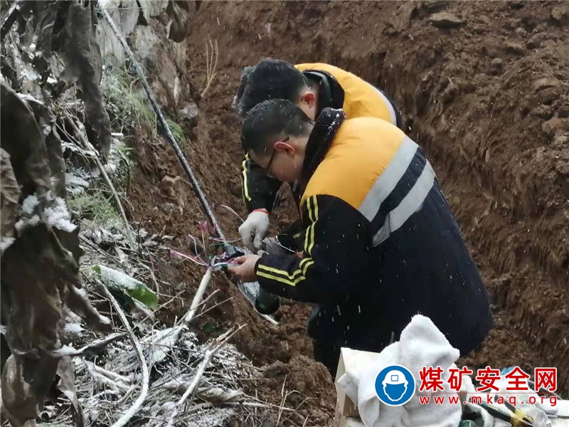 寶麟電務段段長在得到搶修命令後,立即組織通信班組整理應急搶修工器具、設備備件、挖掘工具等,出發前往鳳翔二廠k0+100處進行故障搶修。中午12點20分,搶修人員抵達鳳翔二廠,對斷裂電纜進行挖掘和初步檢查,判斷電纜完全斷裂。在對現場進行安全防護措施期間,立即通知電力班組和信號班組進行配合搶修。隨即通信、電力、信號三個班組人員對電纜挖斷處進行挖掘,進一步更深入仔細的檢查並進行故障搶修,這是一場與雨雪鬥爭、與時間賽跑的搶修工作。早一分鍾恢複通訊電纜,就早一分鍾確保電煤正常運輸。