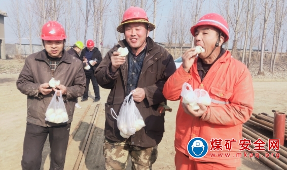 “今天這大包子格外香,不僅溫暖了我們的胃,更溫暖了我們的心,我們要好好工作,保證安全,不辜負領導對我們的關心”168鑽機機長曹成路動情地說。大家團坐在一起,有滋有味地品嚐著包子,同事之間的友情在歡聲笑語中傳遞。