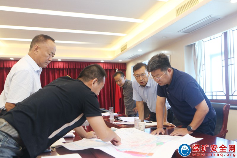 調研期間,與會人員還對照圖紙查看了下一階段生產接替以及采區塌陷影響情況。
