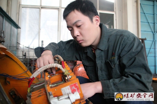 在董礦分公司機電科小型電器組簡陋的辦公室內,一個中年人正在桌旁擺弄著拆開的電器開關,他旁邊的工具櫃中,堆放著一本本專業書......